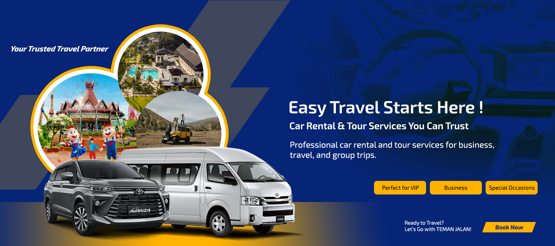 TEMAN JALAN is a professional transportation and tour service provider based in Tangerang, Indonesia. We are committed to delivering safe, comfortable, and reliable travel solutions for both local and international customers.